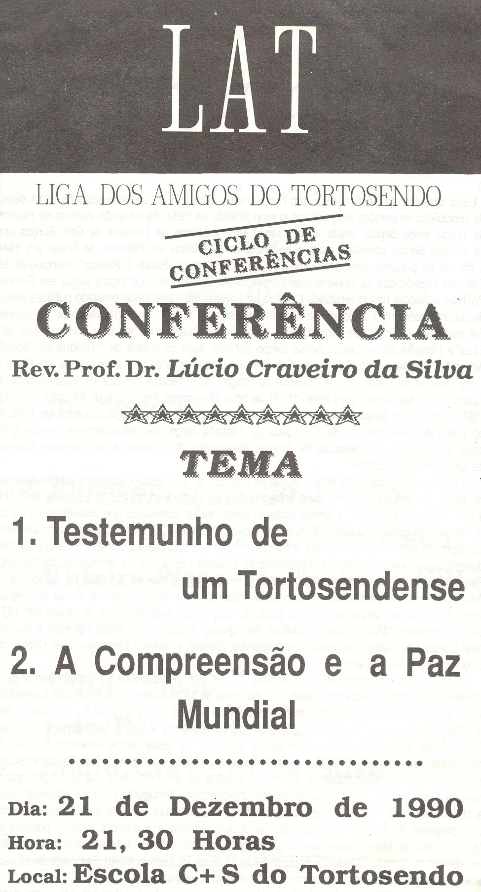 Craveiro da Silva,Conferencista